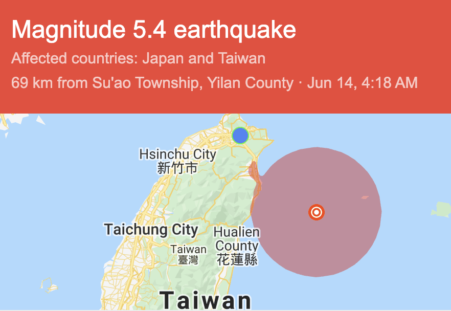 Another visit from Murphy. As the telescope was setting out on skyscraper deck, not locked down, a magnitude 5.4 earthquake struck Taiwan, with an epicenter 69 km from Su'ao County, Yilan Township on June 14th at 4:18 am local time. A lot of vibrating, shaking, rocking, rattling and rolling took place but the weighty Celestron telescope stood its ground. Whoever said the massively heavy and stout Celestron C14 telescope was lightweight and portable, had a few too many brewskies that night. Do not trust Celestron's advertising video. I spent part of my life as a class II Olympic Lifter and Powerlifter and the fully assembled telescope is not going anywhere!